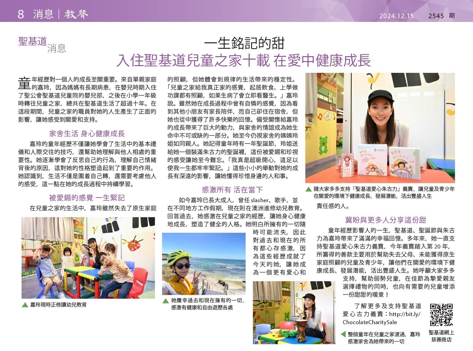 一生銘記的甜 入住聖基道兒童之家十載 在愛中健康成長